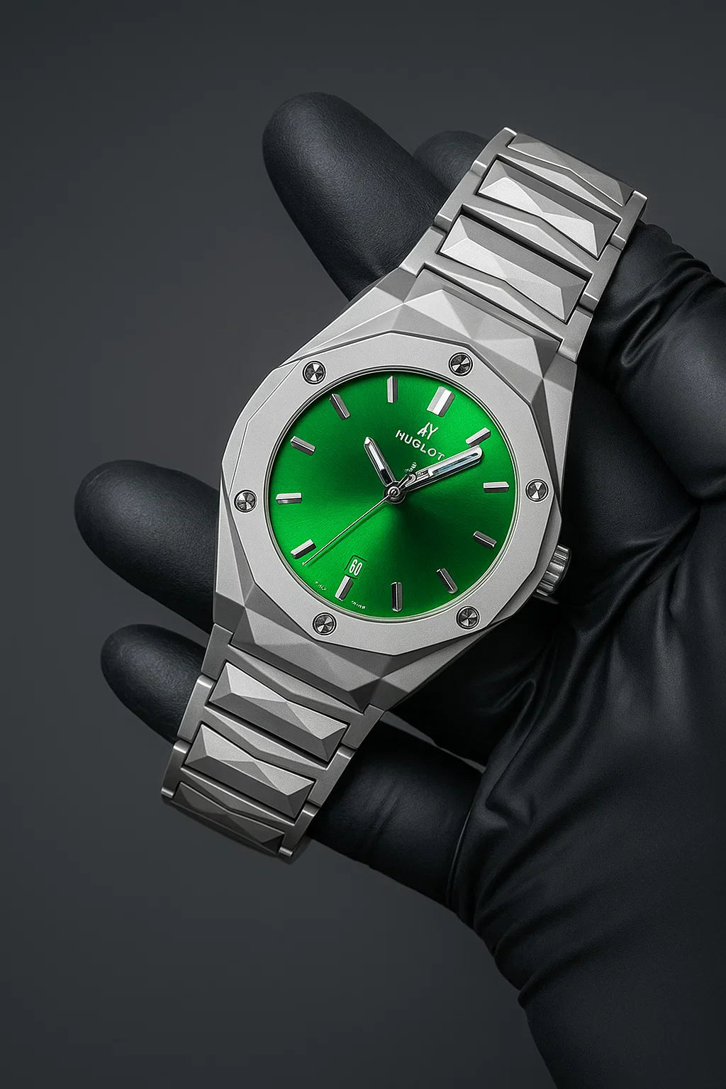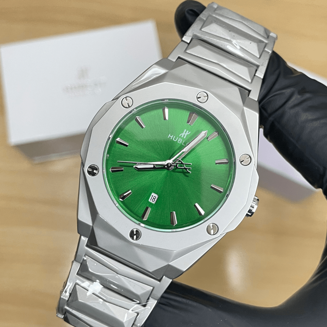 • Bold meets elegance in the HB Premium Watch with a rich green dial and luxury diamond-cut chain. Crafted for men who appreciate standout details, this timepiece adds a fresh and refined touch to any outfit.