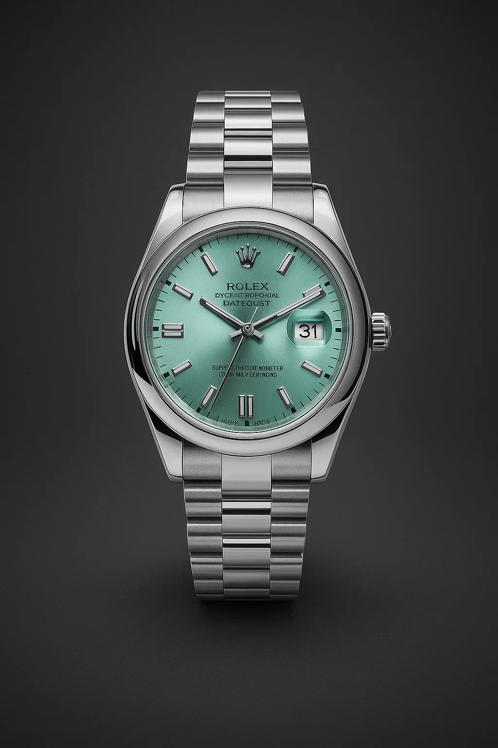 Make a bold statement with the RLX Oyster featuring a rare sea green dial and polished stainless steel finish. Stylish and striking, this timepiece blends modern color with classic build, perfect for trendsetters who appreciate timeless craftsmanship.