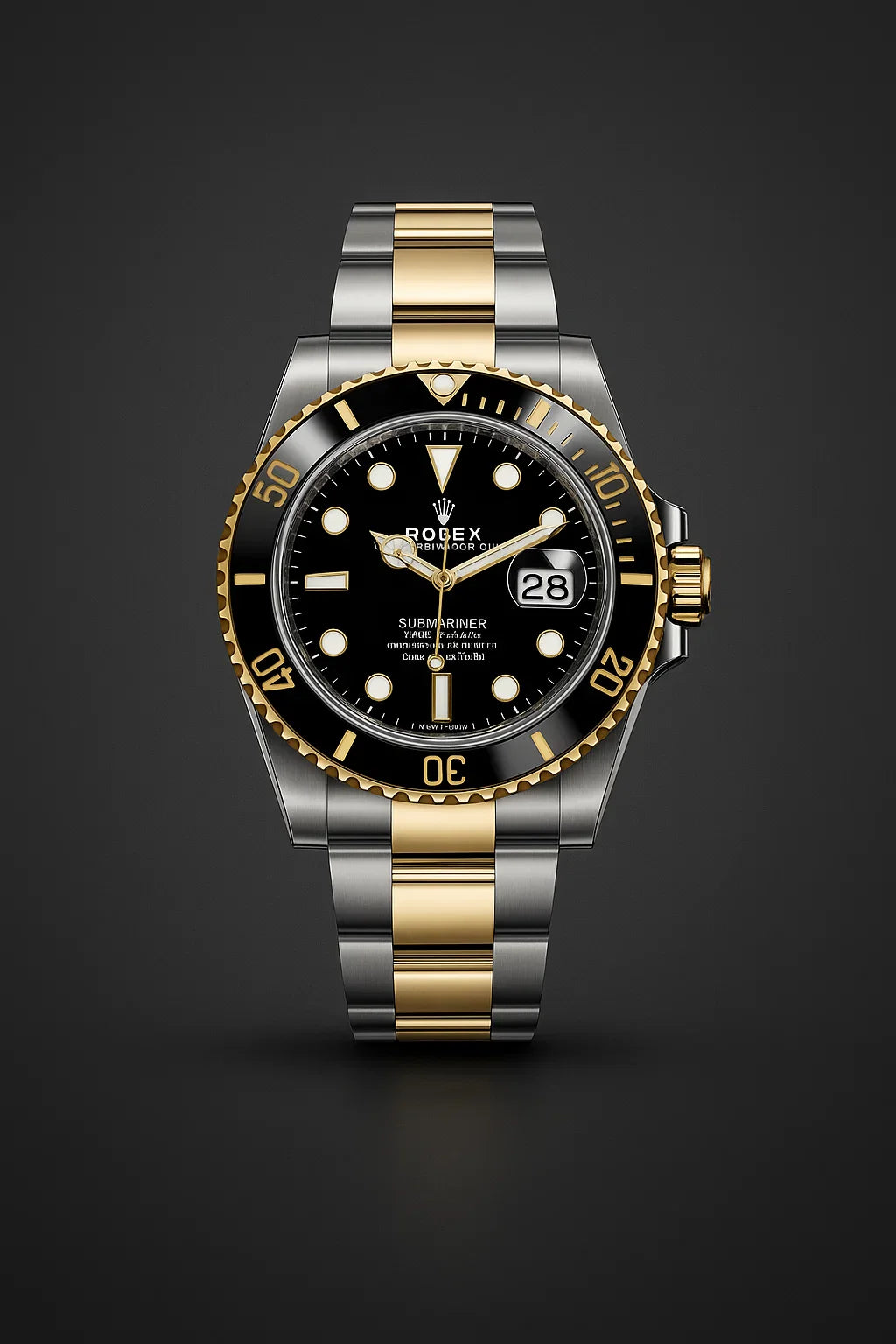 Make a bold statement with the iconic Submariner. Featuring a 40mm case in a luxurious gold and silver two-tone finish, this timepiece combines classic dive watch design with modern-day elegance and precision.